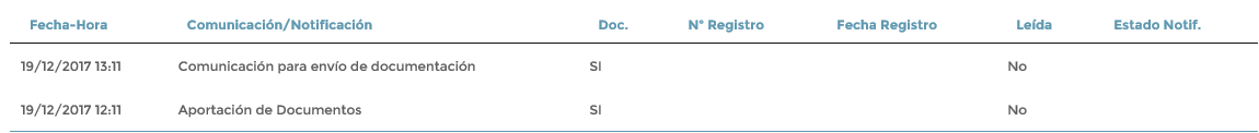 En esta rejilla aparecen las Comunicaciones/Notificaciones del expediente en relación a los criterios de búsqueda que hemos indicado.