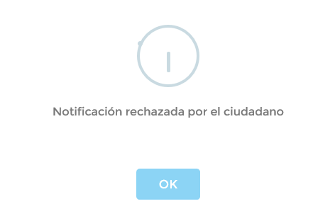 • En caso de que seleccionemos una notificación que haya sido rechazada previamente, no podremos leerla, y aparecerá el siguiente mensaje: